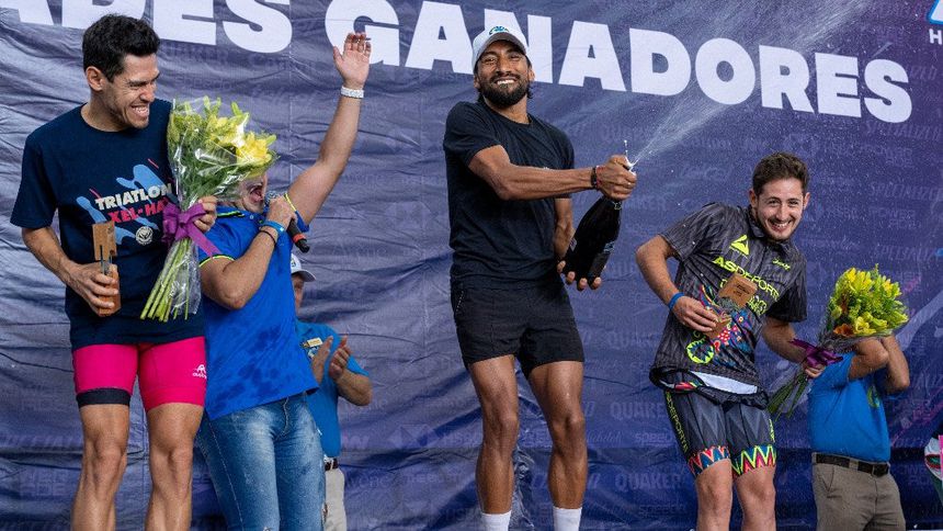 Crisanto Grajales fue la gran estrella este sábado en el Triatlón de Xel-Há, el veracruzano no solo se coronó en la categoría elite, sino que ganó por una cómoda diferencia a sus rivales, como hasta para caminar en la recta final.
