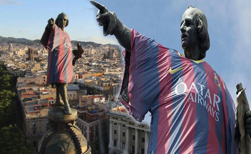 El monumento de Cristóbal Colón ubicado en Barcelona amaneció con la camiseta del club, como parte de la estrategia publicitaria de su patrocinador, para dar a conocer el nuevo uniforme que utilizará la próxima temporada.