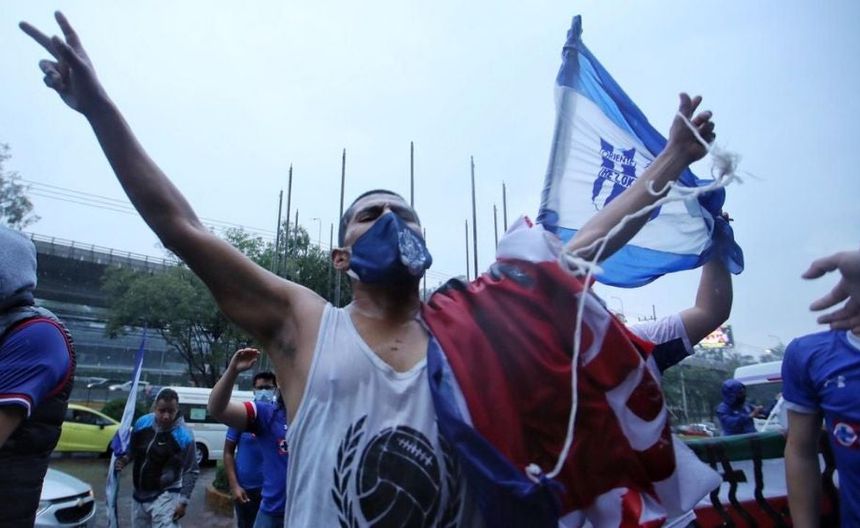 Un grupo de aficionados de Cruz Azul se reunió a las afueras del hotel de concentración para apoyar al equipo previo a su enfrentamiento contra América, pese a que aún no están permitidas las concentraciones debido a la pandemia de Covid-19 que azota el país.
