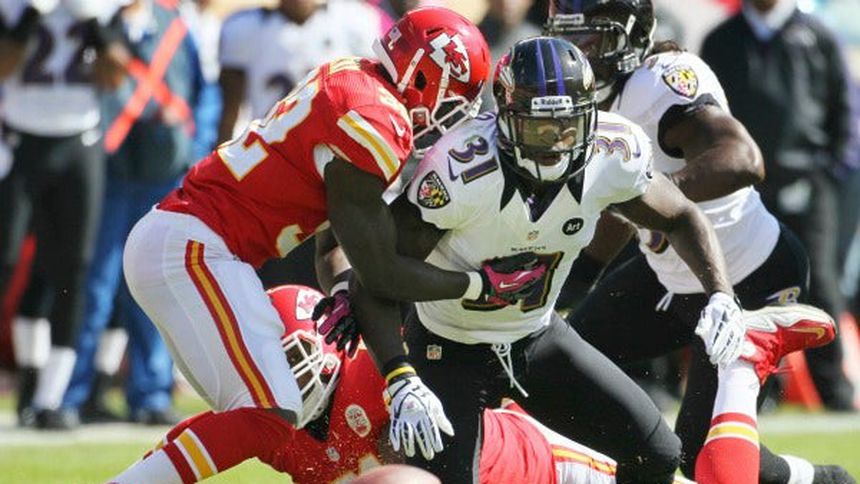 Ray Rice corrió para 101 yardas, Justin Tucker convirtió tres goles de campo y la defensiva de los Cuervos de Baltimore mantuvo a los Jefes de Kansas City fuera de la zona final en el último cuarto para lograr la victoria por 9-6.