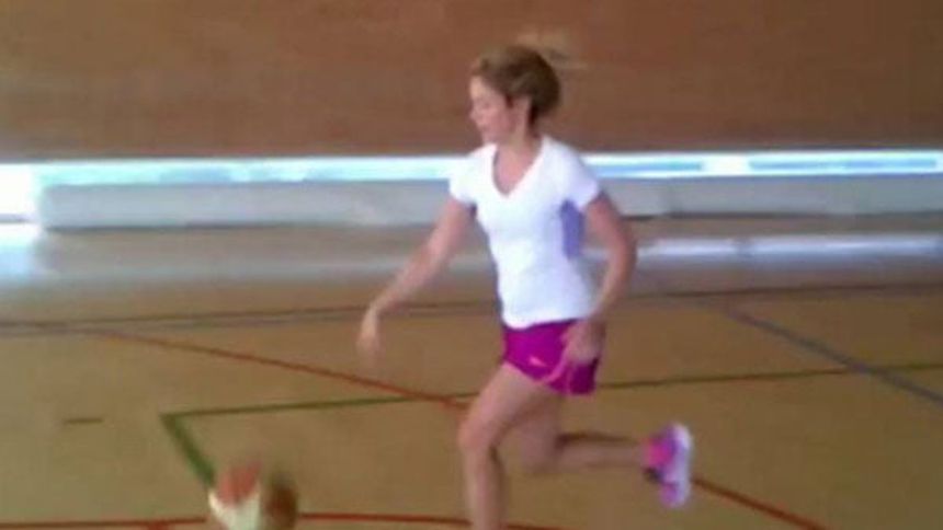 La cantante colombiana subió a las redes sociales un video donde aparece en un gimnasio español recibiendo indicaciones de una instructora para encestar ';como los grandes';.