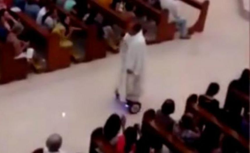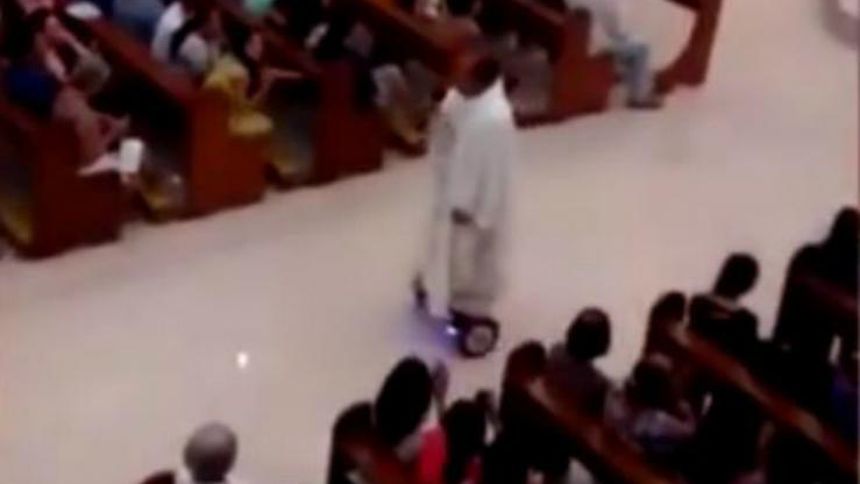 Cura es suspendido por oficiar misa en hoverboard
