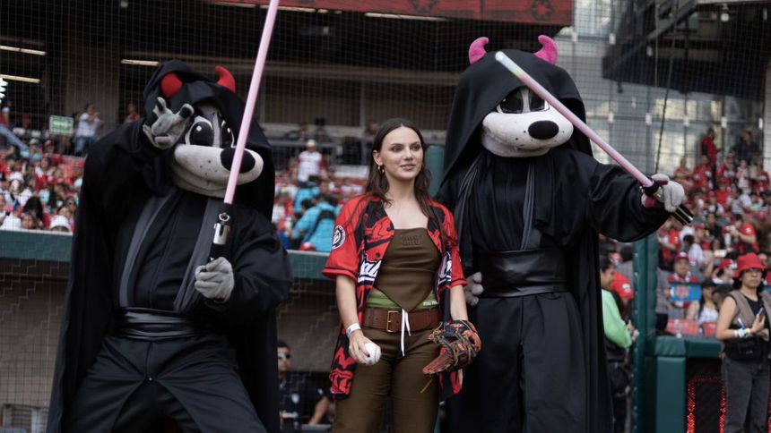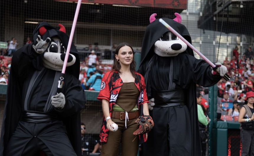 La protagonista de la nueva serie del universo Star Wars, 'The Acolyte', saltó al Diamante de Fuego acompañada de Roxy y Rocco, mascotas de los Pingos.