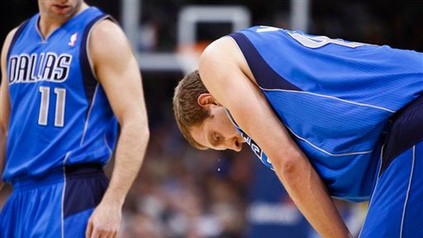 Nowitzki anotó 13 puntos antes de salir cuando restaban 9:10 minutos del segundo período debido a, dijeron los Mavericks, dolores en la rodilla derecha. Shawn Marion lo suplió honrosamente al encestar 20 puntos.