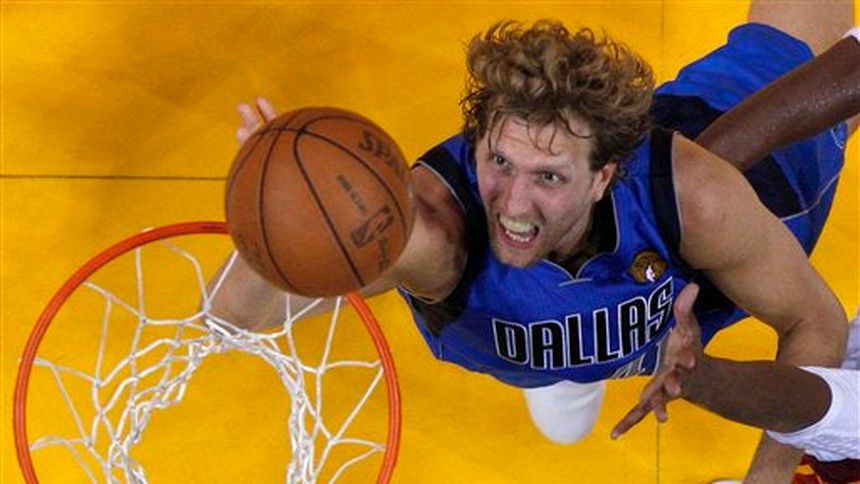 Nowitzki hizo una canasta debajo del aro que rompió el empate con 3,6 segundos por jugarse, y los Mavericks remotaron una desventaja de 15 puntos con seis minutos en el reloj en el último período el jueves para superar 95-93 al Heat y empatar la final a un triunfo por bando.
