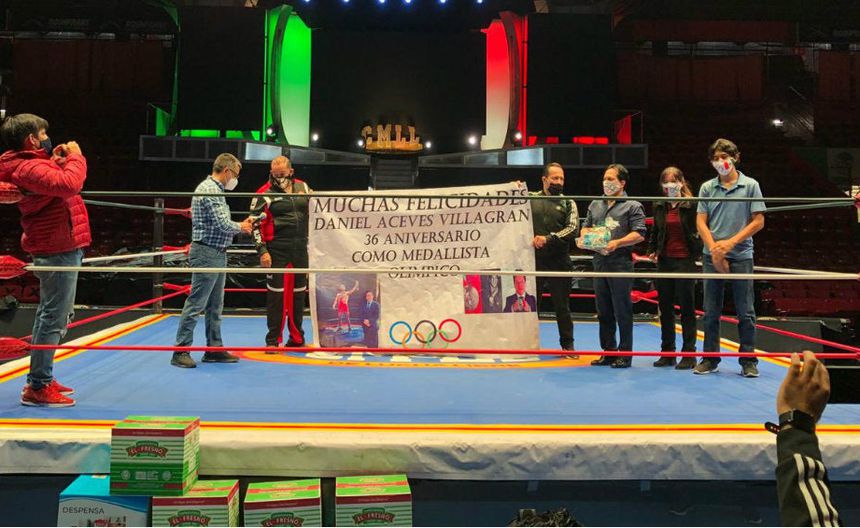 Con el motivo de celebrar los 36 años de su obtención de la medalla de plata en los Juegos Olímpicos de Los Ángeles 1984, Daniel Aceves entregó apoyo al Consejo Mundial de Lucha Libre (CMLL) y a sus elementos.