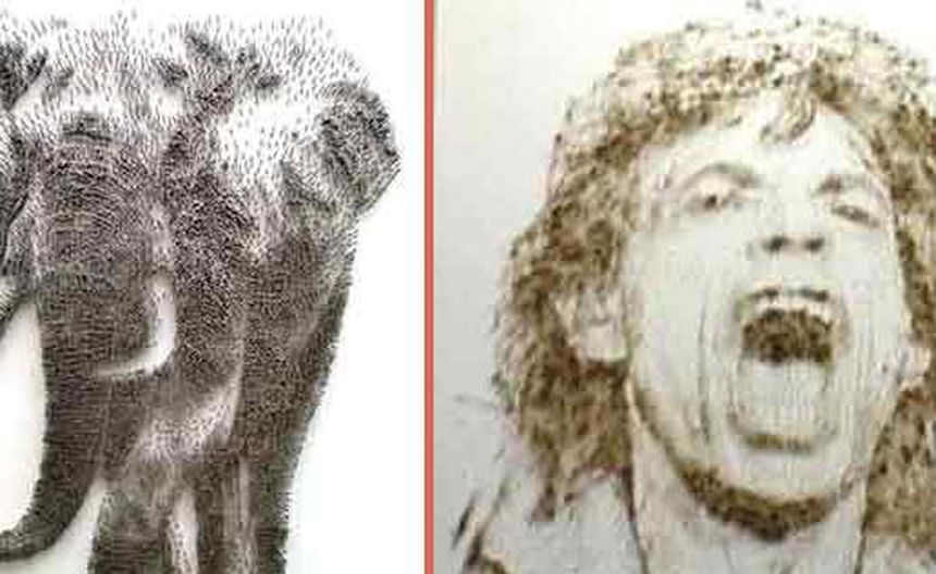 A primera vista, parece que se tratara de una serie de dibujos, pero el arquitecto David Foster retrata a conocidos personajes con un martillo y algunos clavos. El resultado: una especie de arte puntillista con el que retrata a celebridades, animales, flores y con los que alcanza un alto nivel de realismo.