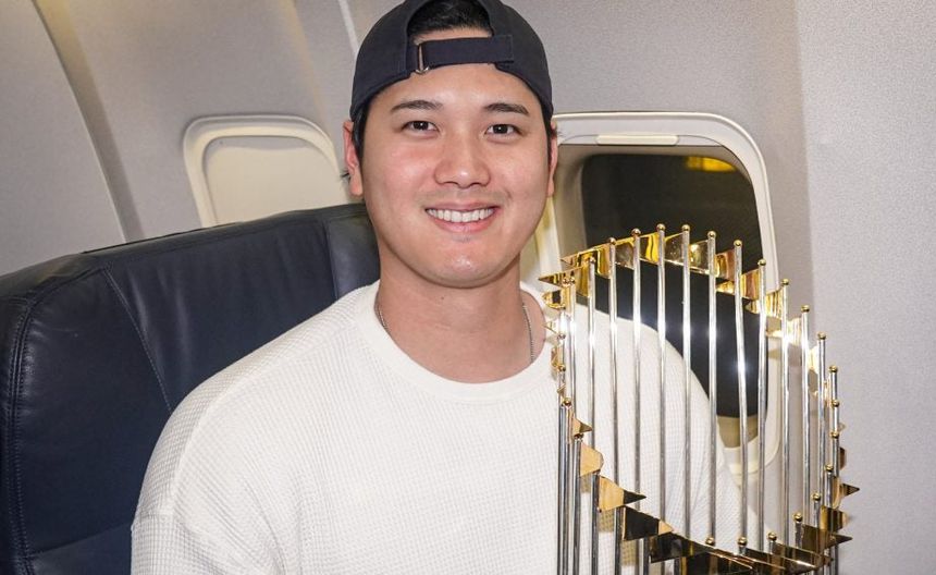 Walker Buehler, presumió el trofeo al salir del avión y lo alzó por lo alto de Los Ángeles. Es el octavo campeonato conseguido en las Grandes Ligas por los Dodgers.
