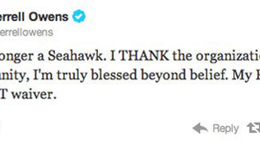 Un nuevo capítulo de la telenovela de Terrell Owens en su intento por regresar a la NFL se ha escrito este domingo luego de que el ex receptor de Vaqueros de Dallas y 49ers de San Francisco indicara a través de su cuenta de Twitter que ya no es miembro de los Halcones Marinos de Seattle.