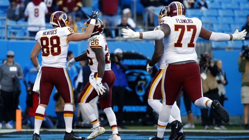 Jugadores de los Redskins festejan una anotación sobre Carolina | AP