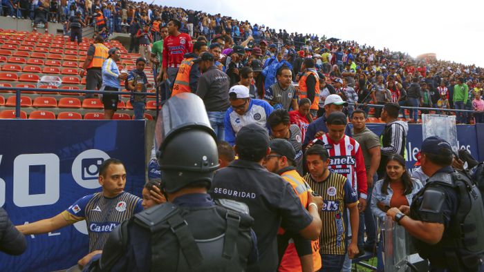 Sin embargo, el desorden continuó a las afueras del recinto. Tras desalojar la casa del conjunto de San Luis el operativo de seguridad se vio rebasado, pues decenas de aficionados se siguieron enfrentando en el estacionamiento del lugar.