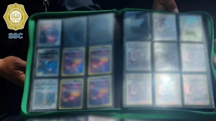 Durante la inspección, los oficiales encontraron dos carpetas con tarjetas coleccionables de anime, las cuales estaban valuadas en aproximadamente 20 mil pesos.