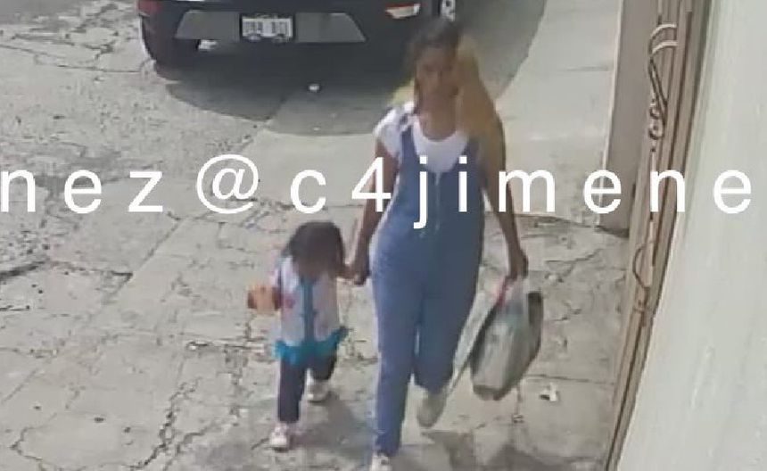 Cámaras de seguridad, que publicó el periodista de seguridad pública, Carlos Jiménez, muestran de frente a la señora cuando iba de la mano con la menor.