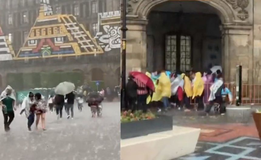 Diluvio en el Zócalo de la CDMX espanta a la gente previo al Grito de la Independencia de México