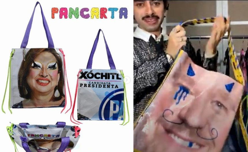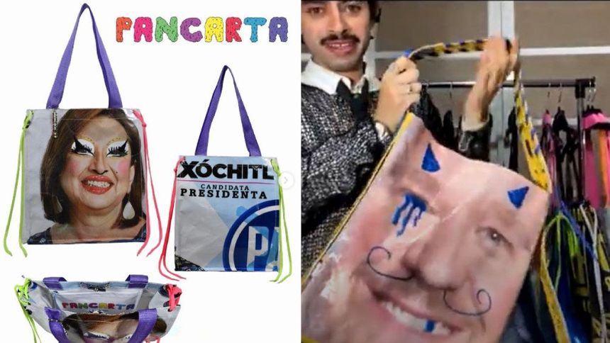 Diseñador mexicano convierte basura electoral en bolsos, gorras y prendas de moda