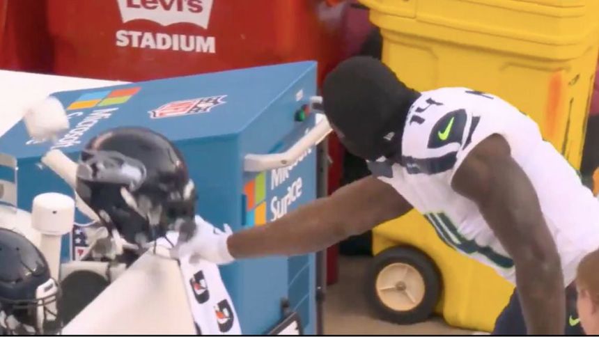 Luego de esa intercepción, el receptor abierto de los Seattle Seahawks, DK Metcalf, no soportó el perder ante el rival divisional y salió del emparrillado malabareando su caso hasta que, una vez en la banca, terminó por estrellarlo contra una banca del estadio de los 49ers.