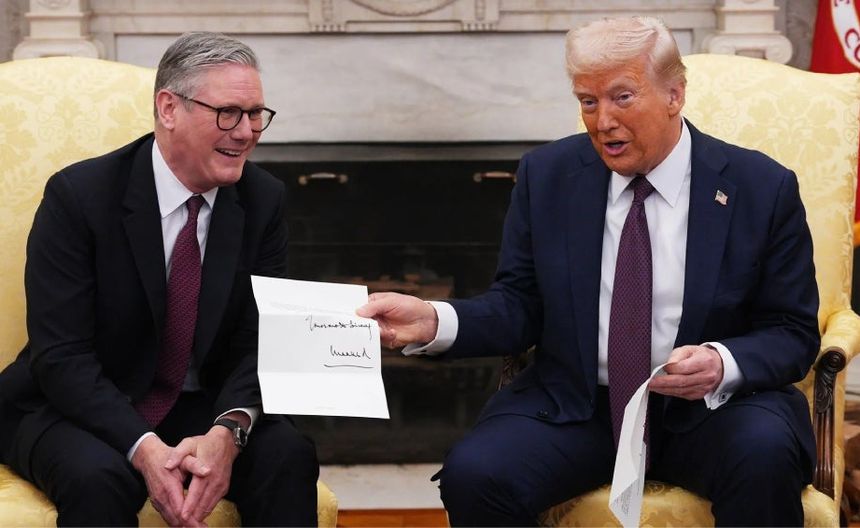 El primer ministro, Keir Stamer le presentó al presidente de Estados Unidos una carta escrita por el rey en la oficina de Trump. El mandatario estadounidense mostró la carta en la que se veía escrito “privado y confidencial” con la firma del rey a las cámaras de los medios presentes.