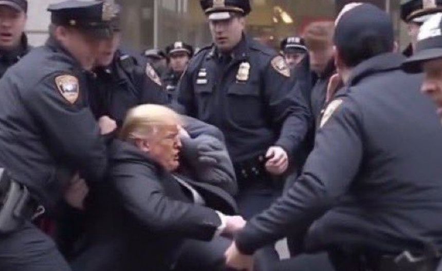 En las fotos se puede ver como la policía somete al expresidente de los Estados Unidos de América, quien en la secuencia primero va corriendo, pero es alcanzado por la justicia que lo derriba para posteriormente arrestarlo.