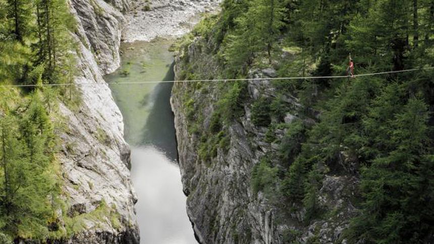 Un hombre camina en una cuerda a 40 metros del río, en Mauvoisin, Suiza | RED BULL