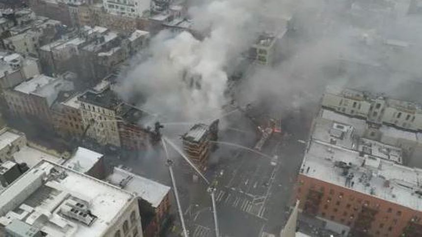 Dron capta incendio, tras explosión en edificio de Nueva York