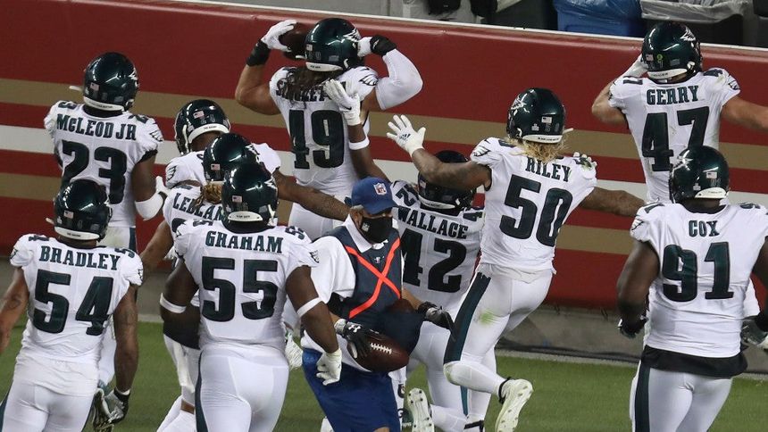 Hombres que surgieron de la nada le dieron el triunfo a Filadelfia. Travis Fulgham atrapó el único envío de anotación de Wentz en el último cuarto. En la siguiente ofensiva de los 49ers, Alex Singleton regresó una intercepción hasta las diagonales que terminó por mandar a Mullens a la banca y le dio a los Eagles los 14 puntos que le terminaron dando la victoria.