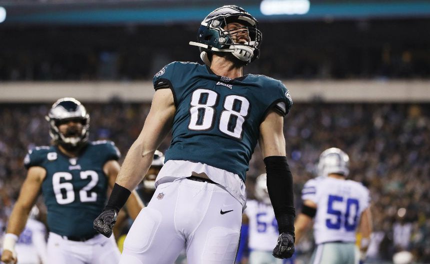 Dallas Goedert festejando tras anotarle a Cowboys | AP