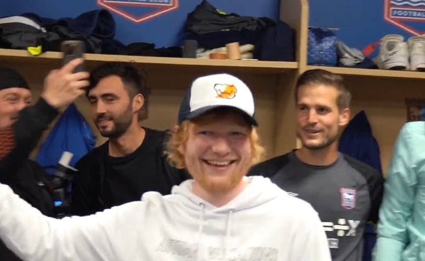 Ed Sheeran celebra victoria en el vestidor del Ipswich Town al ritmo de su canción 'Perfect'