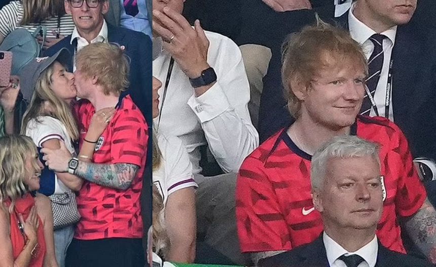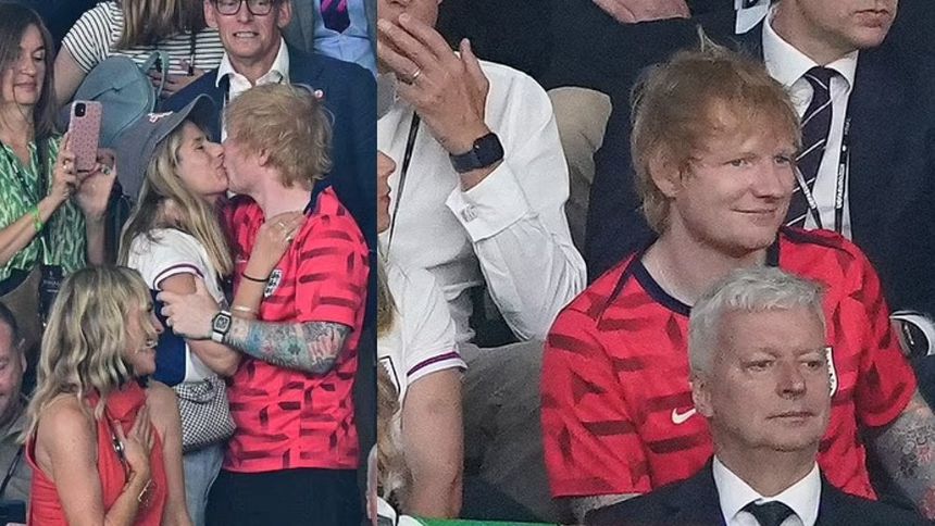 Ed Sheeran y su esposa Cherry celebran gol de Inglaterra con un beso en partido final contra España