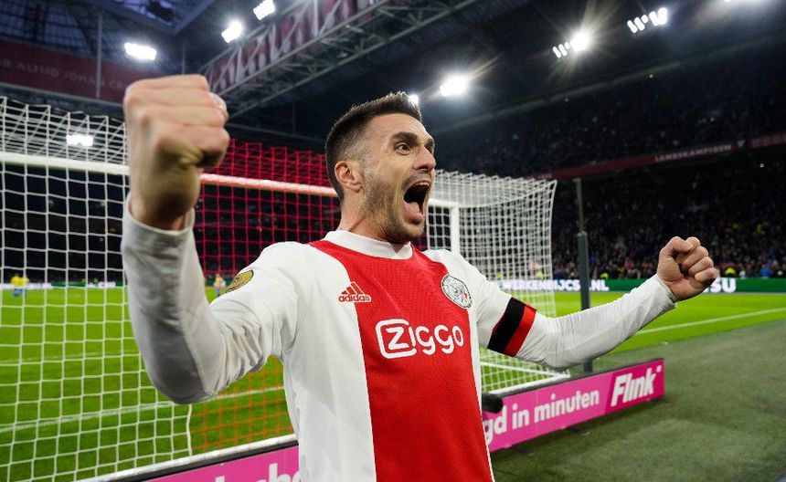 Dusan Tadic festejando gol de la victoria | TWITTER @AFCAJAX