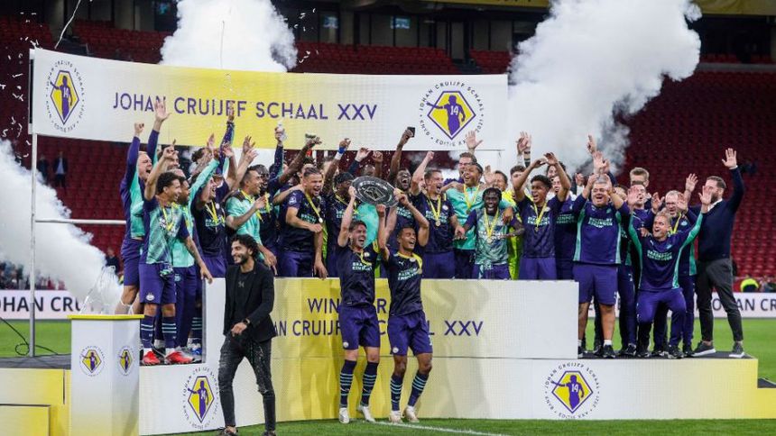 Un doblete de Noni Madueke en la primera parte y dos tantos de Yorbe Vertessen y Mario Götze en la segunda le dieron la Supercopa de Países Bajos al PSV Eindhoven (0-4) y tumbaron al Ajax, que jugó toda la segunda parte con un hombre menos por la expulsión del argentino Nicolás Tagliafico.