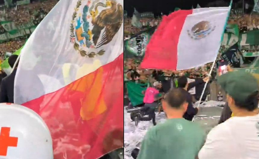 El mexicano ondeó la bandera Tricolor que destacó por su enorme tamaño cerca de una de las cabeceras donde se encuentra la parcialidad de la barra.