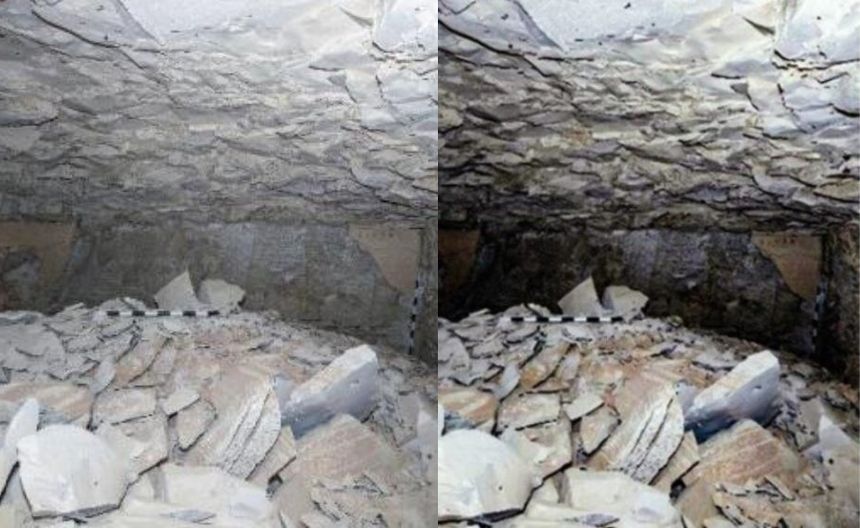 La tumba se encontró en un mal estado de conservación debido a su exposición a las inundaciones poco después de la muerte del rey, lo que provocó la caída de trozos de mortero del interior.