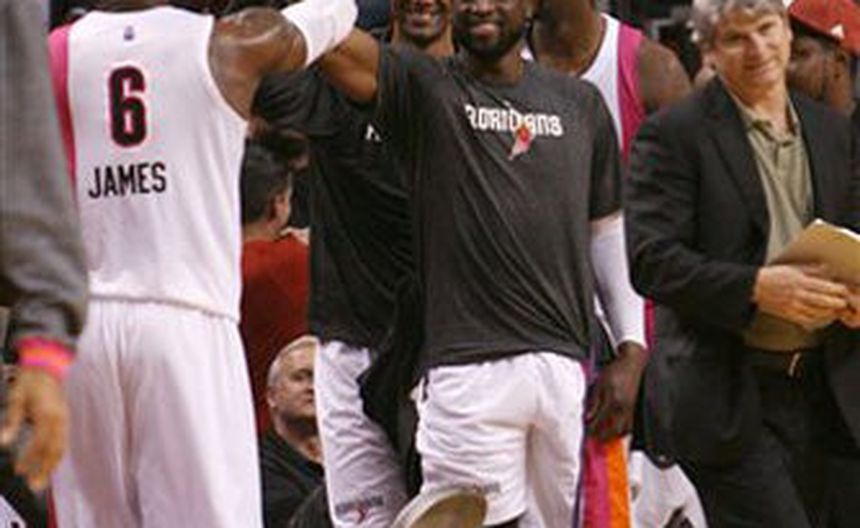 LeBron James y Chris Bosh terminaron cada uno con 19 puntos y nueve rebotes, mientras Dwyane Wade y Udonis Haslem anotaron 16 por cabeza y el Heat de Miami llegó a 15 victorias seguidas en casa al apalear 106-85 a los Mavericks de Dallas en una especie de reproducción de la pasada final en la NBA.