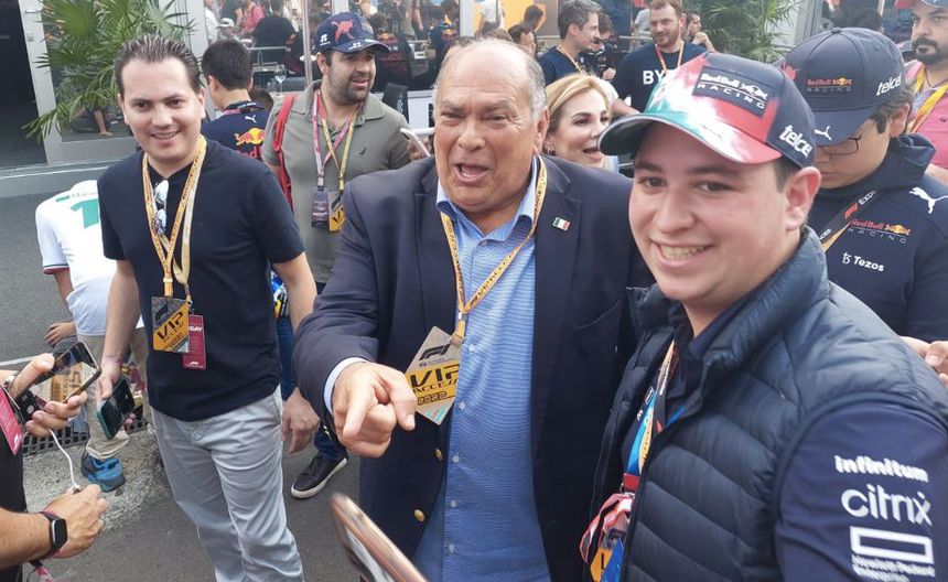 Antonio Pérez Garibay hizo su aparición a unos minutos de que arrancará la segunda prueba libre en el Autódromo de los Hermanos Rodríguez, se dio tiempo de acercase a los asistentes e invitarlos a festejar dando por hecho que su hijo ganará este Premio.