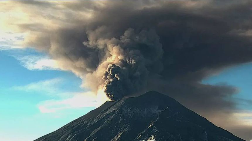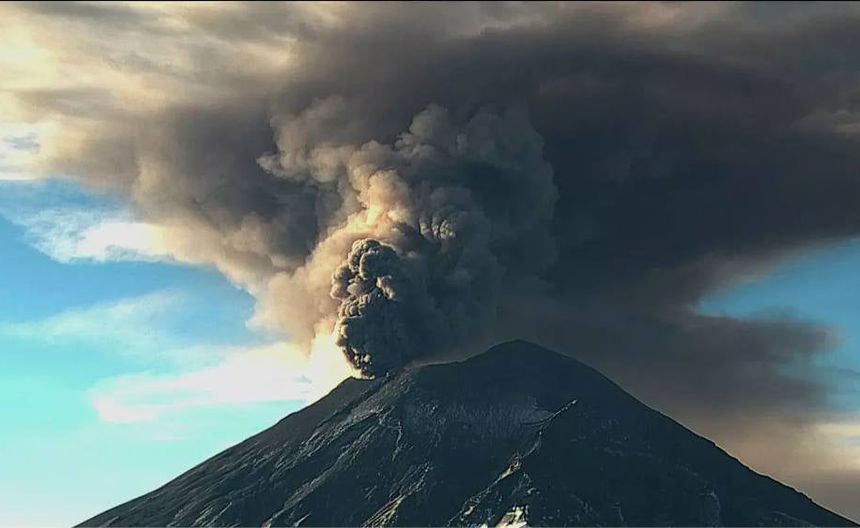 El volcán Popocatépetl está activo y emitió una gran fumarola de dos kilómetros de altura, lo que causó la caída de ceniza en varias áreas. La actividad volcánica podría continuar.