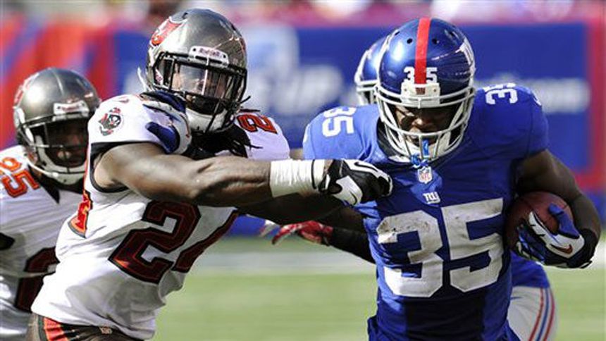 Eli Manning lanzó para ganancia de 510 yardas, y la anotación de Andre Brown en corrida de dos yardas cuando restaban 31 segundos por jugar levantó a los Gigantes de Nueva York de una desventaja de 14 puntos para superar el domingo por 41-34 a los Bucaneros de Tampa Bay.