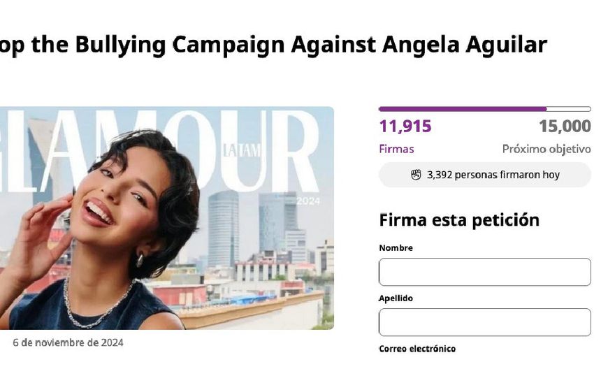 La liga para defender a Ángela Aguilar es la siguiente: https://www.change.org/p/stop-the-bullying-campaign-against-angela-aguilar