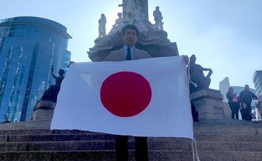 Embajador de Japón en México celebró el triunfo de su selección en Ángel de la Independencia