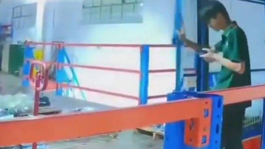 Un joven empleado de una fábrica textil en Xiaolan, provincia de Guangdong, sufrió un aparatoso accidente luego de caer al vacío por el hueco de un montacargas mientras usaba su teléfono celular. El incidente ocurrió el pasado 24 de junio de 2025 y quedó registrado por las cámaras de seguridad del lugar.