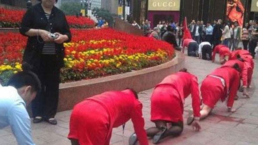 En China, empresario pone a gatear a sus trabajadores