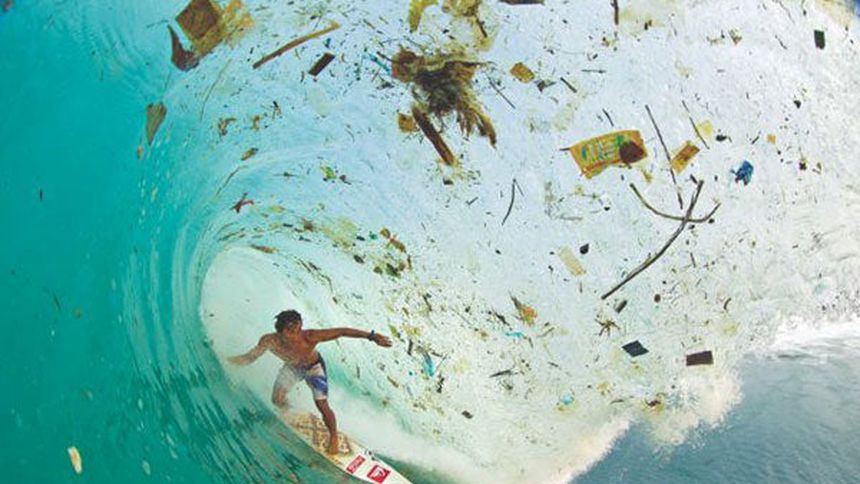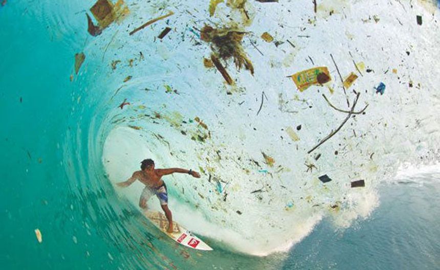 En Indonesia surfean en una ola de basura