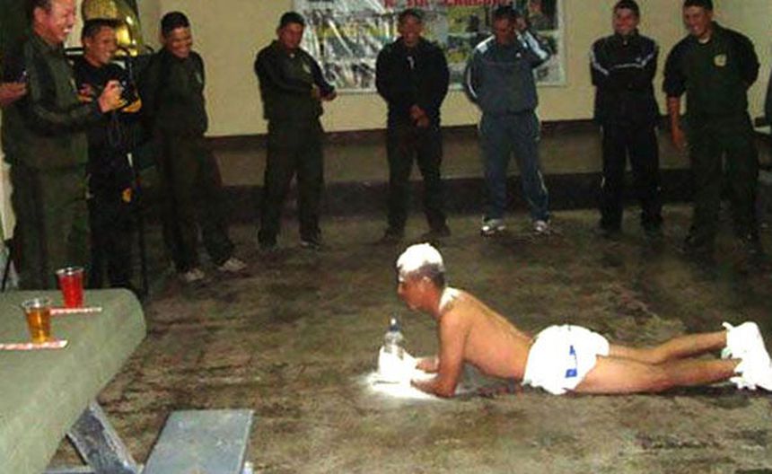 De acuerdo con información del diario peruano El Comercio, esto es parte de una ceremonia en la cual seis suboficiales son sometidos a situaciones vergonzosas y humillantes en que se tienen que vestir como bebés, gatean y beben un líquido en biberones, en presencia de otros oficiales.