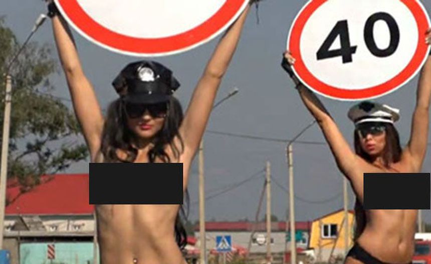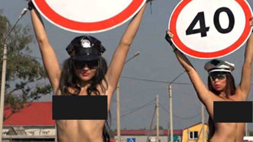 Las chicas en topless entraban en acción cada vez que un vehículo pasaba va a más de 65 km/h, que es el límite máximo en las ciudades rusas.