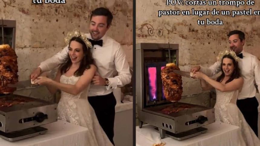 Una pareja de recién casados decidió cortar un trompo al pastor en lugar del pastel de bodas, lo cual sorprendió y divirtió a los invitados. El video de este momento se compartió en TikTok y generó reacciones positivas en las redes sociales.
