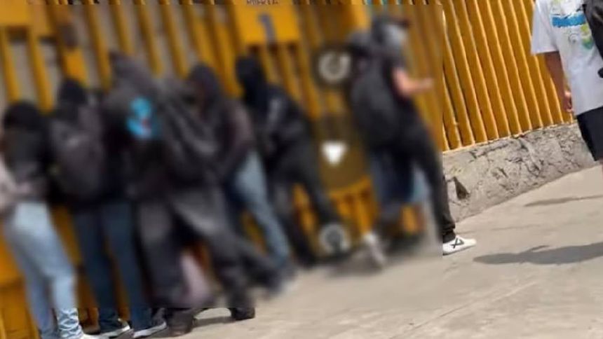 Los presuntos miembros de grupos porriles, bloquearon la entrada principal de una escuela, impidiendo temporalmente la salida de estudiantes y docentes. Videos en redes sociales muestran a los encapuchados dentro de la escuela y a alumnos intentando evacuar.