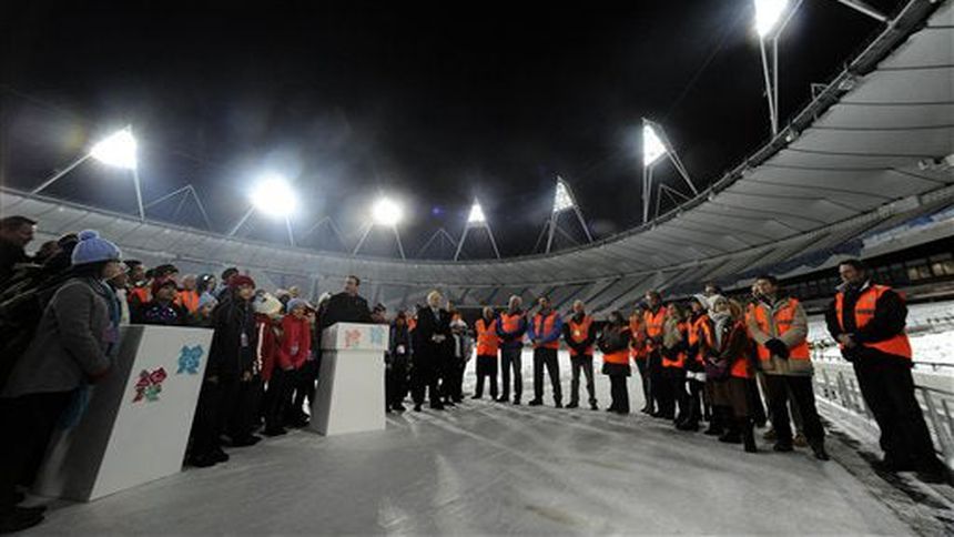El alcalde de Londres Boris Johnson, el director del comité organizador Sebastian Coe y decenas de escolares asistieron a la cermonia bajo temperaturas de congelación dentro del estadio con capacidad para 80.000 personas, pero que estuvo casi vacío.