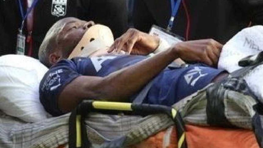 El golpe sucedió al minuto 14 y tras varios minutos de asistencia por parte de los médicos, el delantero fue retirado inmovilizado en camilla del terreno de juego para posteriormente dejar el estadio en ambulancia.