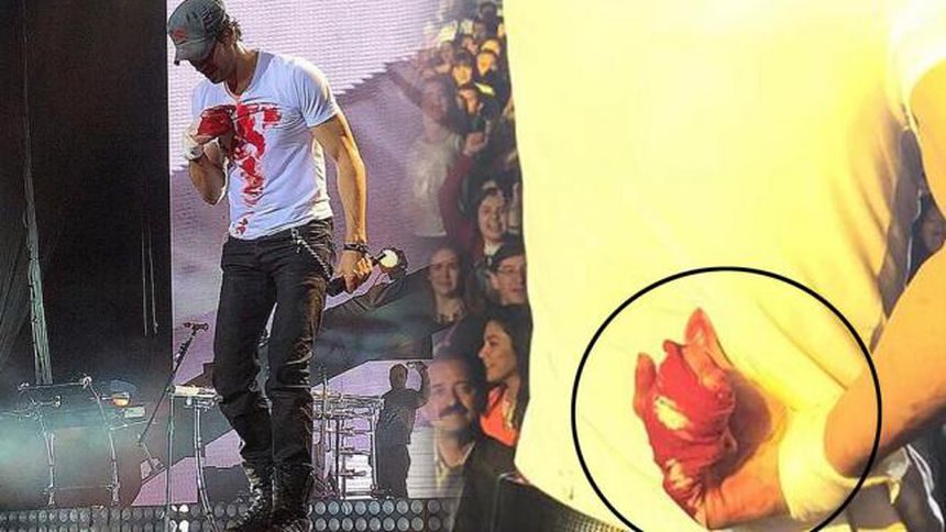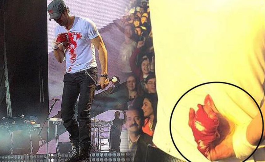 Luego de 50 minutos sobre el escenario, Iglesias intentó manipular con sus propias manos al dron que volaba apenas a unos centímetros de su cabeza; sin embargo, no tuvo la precaución adecuada y dos de sus dedos fueron alcanzados por las hélices del aparato, el cuál arrojó de manera inmediata.