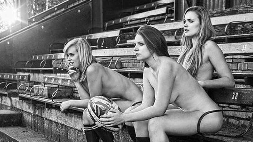 Equipo femenil de rugby... al desnudo