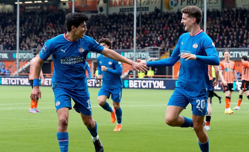 El primer tanto de los locales lo hizo al 33’ el exdelantero del Barcelona, Luuk De Jong, luego de un gran pase de Guus Til para que el atacante definiera sin portero. El 2-0 de los de Eindhoven llegó cinco minutos antes de acabar la primera mitad con un gran remate del propio Til al ángulo.